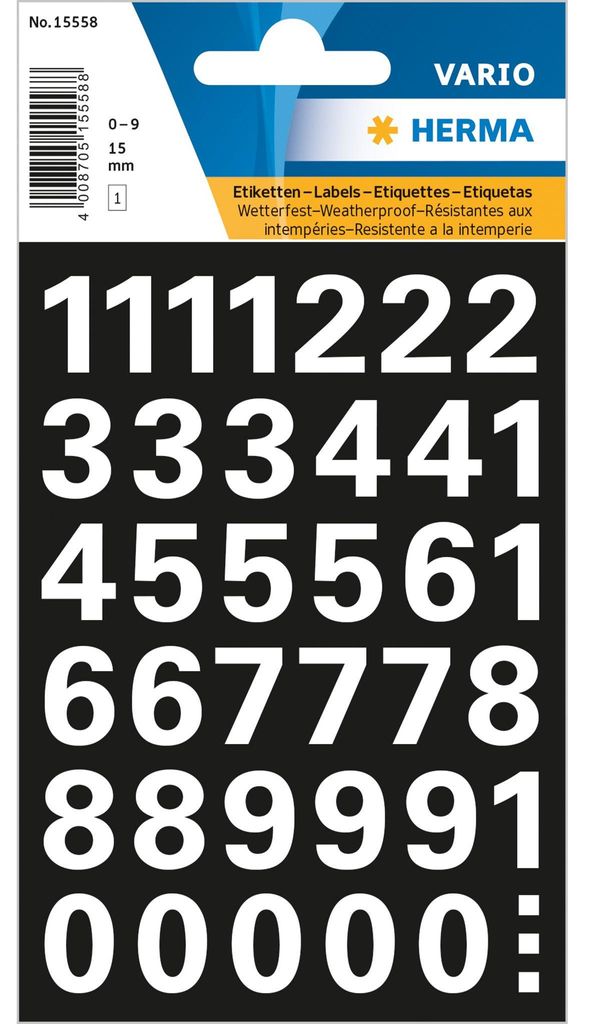 Herma Zahlen 0 - 9 15 mm Folie weiss wetterfest 1 Bl