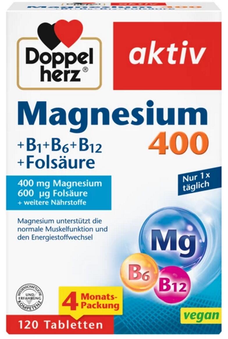 Doppelherz Magnesium 400 + B1 + B6 + B12 + Folsäure, 120 Tabletten