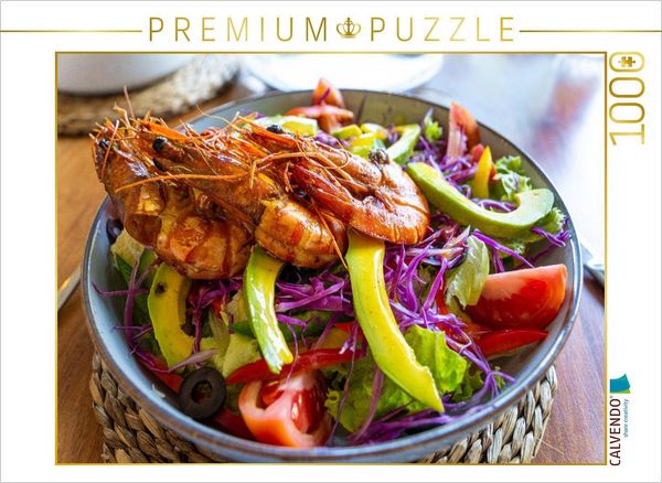 CALVENDO Puzzle Frische Sri Lanka Bowl mit gegrillten Garnelen - Tropisches Food Art Design | 1000 Teile Lege-Größe 64x48cm Foto-Puzzle für glü...