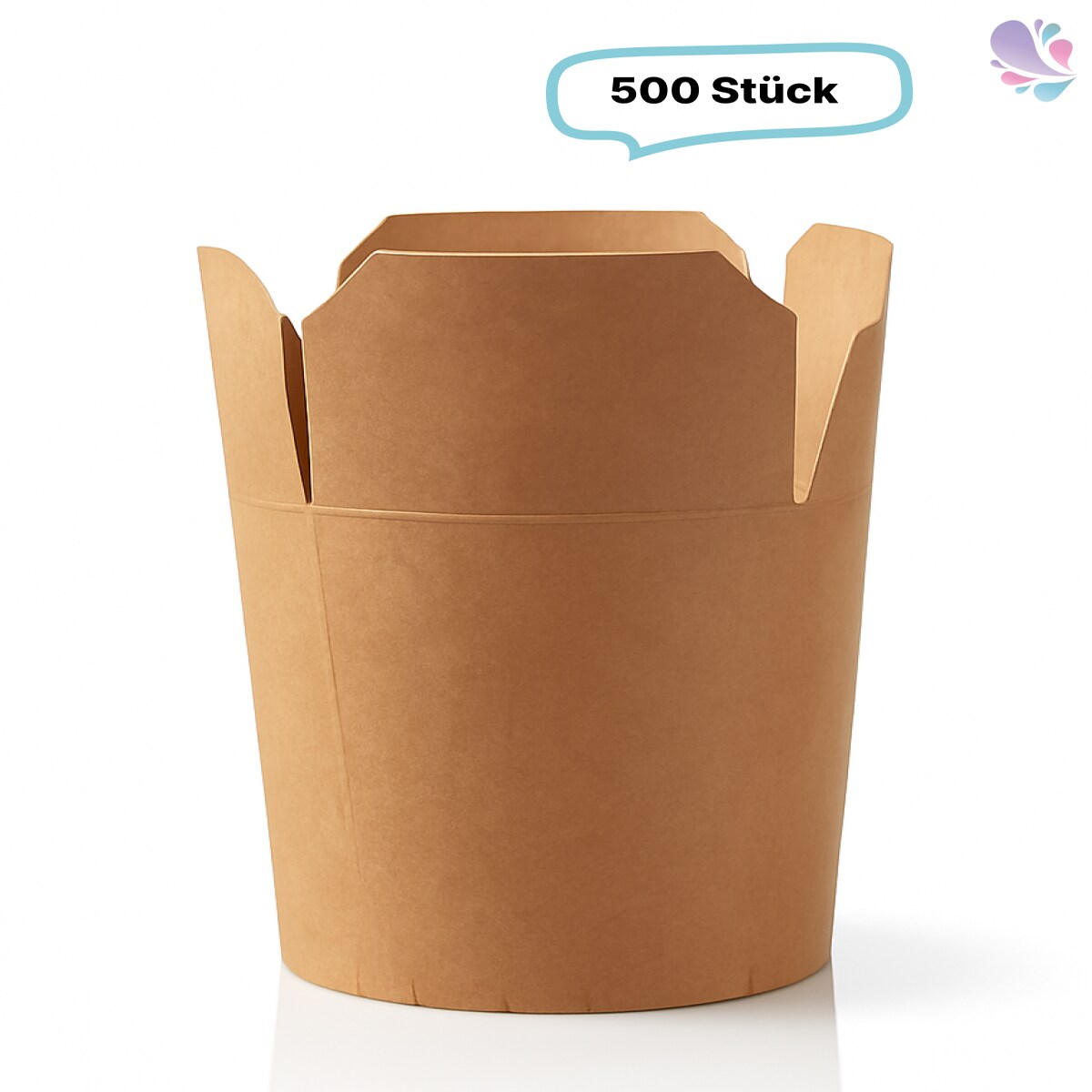 Food Container mit Faltverschluss 710ml 500 Stk, to go, take away, biologisch abbaubar, natürliches Design, Innenbeschichtung