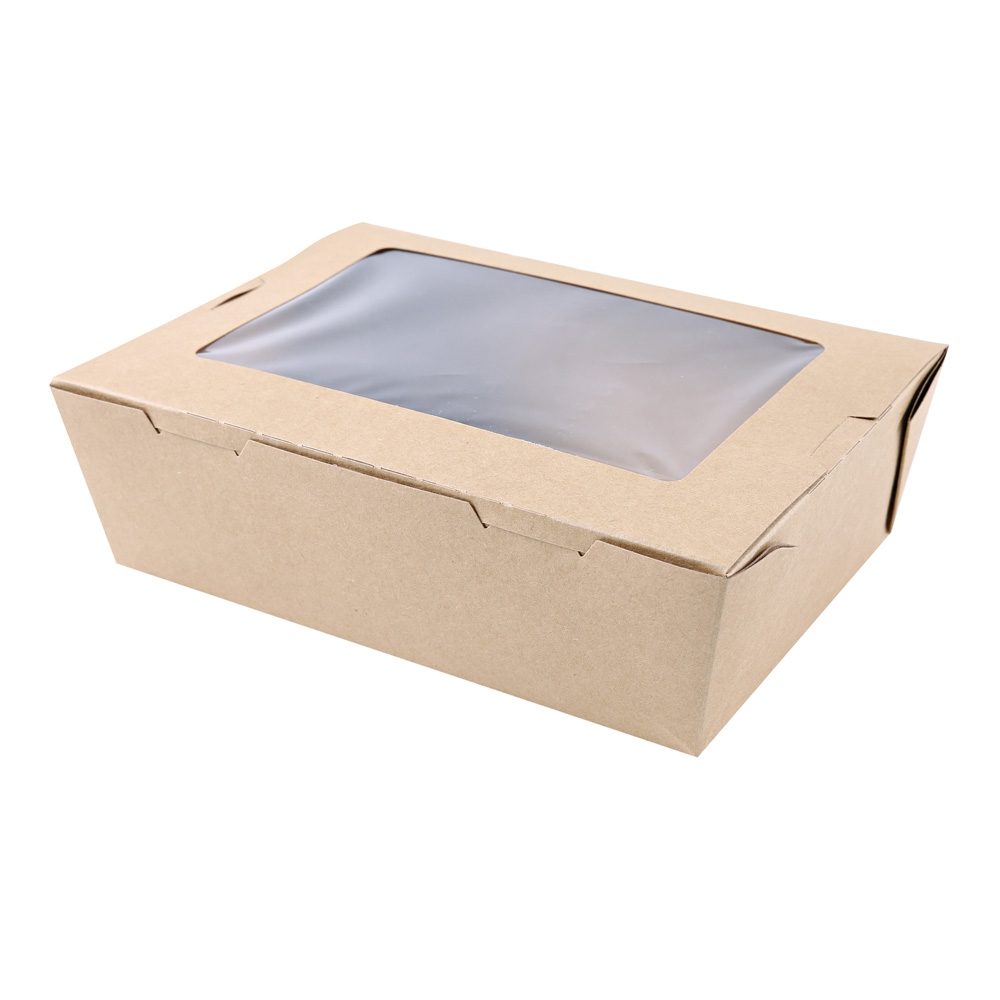 RyanPack Menübox mit Sichtfenster aus Kraftpapier 700 ml Braun – Take Away Foodbox – 50 Stück