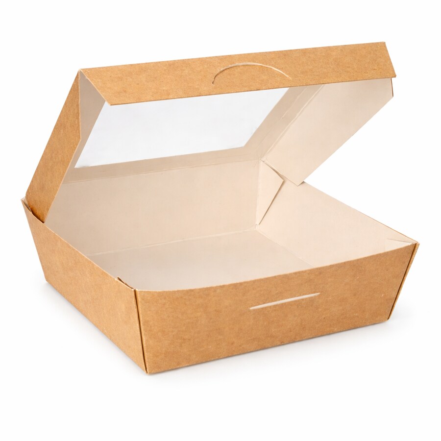 RyanPack Menübox mit Sichtfenster aus Kraftpapier 900 ml Braun – Take Away Foodbox – 50 Stück