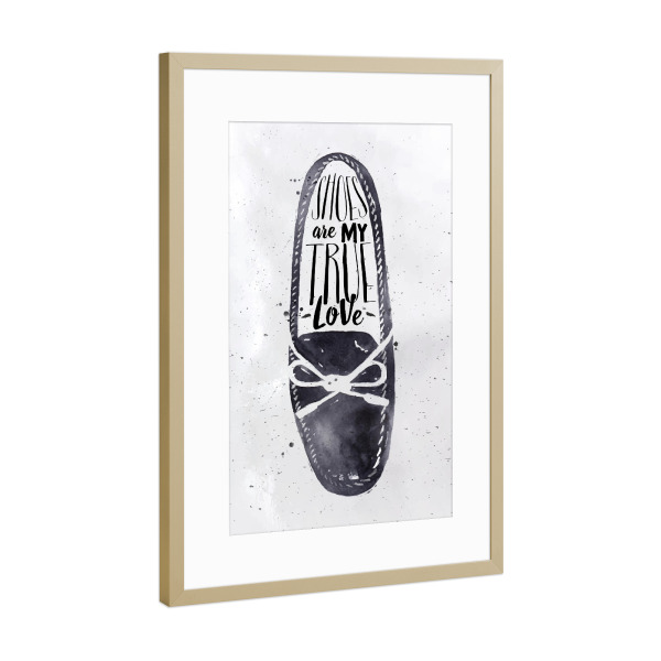 Poster mit Rahmen Gold "Women modern shoes" artboxONE - Typografie,Schwarzweiß,Fashion