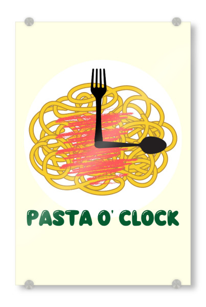 Acrylglasbild "PASTA O' CLOCK" artboxONE - Essen & Trinken - Food,Pasta,Spaghetti,Clock,Fork,Spoon,Time,Humor,Graphic,Meal