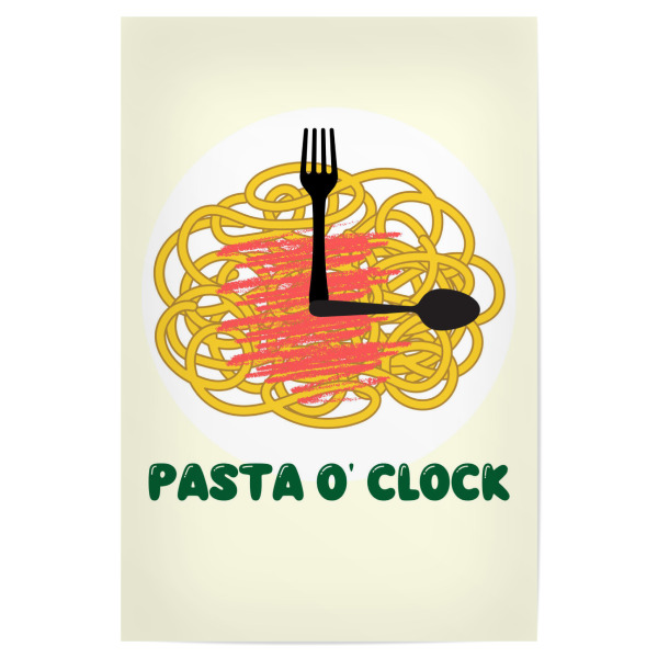 Poster 30x20 cm "PASTA O' CLOCK" artboxONE - Essen & Trinken - Food,Pasta,Spaghetti,Clock,Fork,Spoon,Time,Humor,Graphic,Meal