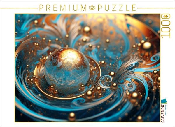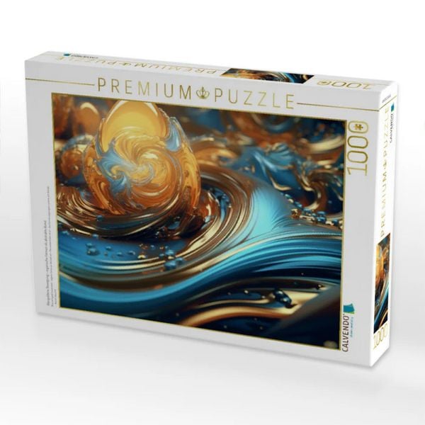CALVENDO Puzzle Blaugoldene Bewegung - organische Formen als abstrakte Kunst | 1000 Teile Lege-Größe 64x48cm Foto-Puzzle für glückliche Stunden
