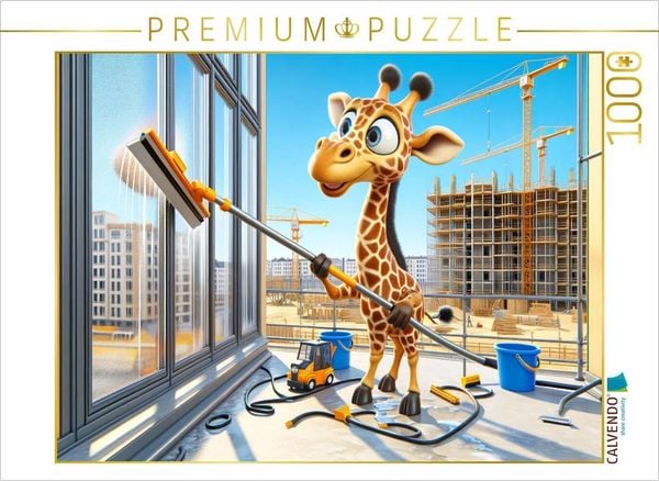 CALVENDO Puzzle Die geschickte Giraffe als Fensterputzer: Hoch hinaus für klare Sicht | 1000 Teile Lege-Größe 64x48cm Foto-Puzzle für glücklic...