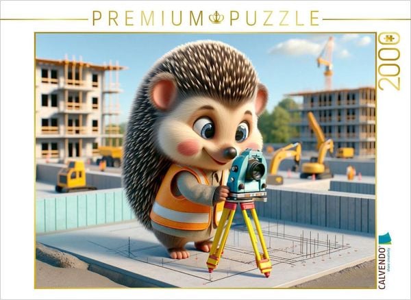 CALVENDO Puzzle Der sorgfältige Igel als Vermesser: Präzision auf der Baustelle | 2000 Teile Lege-Größe 90x67cm Foto-Puzzle für glückliche St...