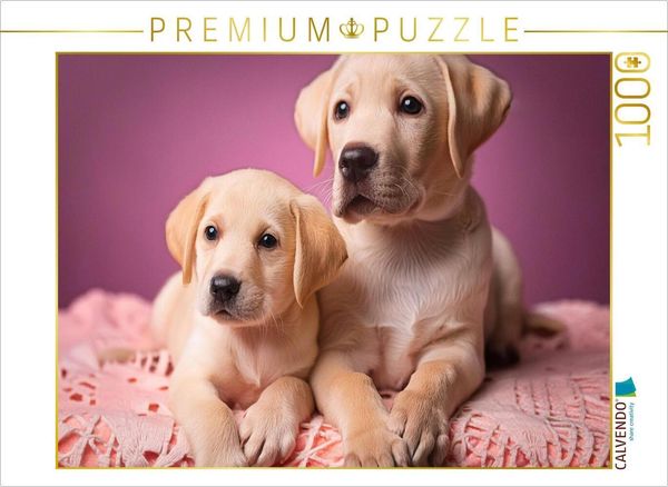 CALVENDO Puzzle Zwei Labrador Retriever Welpen kuscheln auf einer rosafarbenen Decke | 1000 Teile Lege-Größe 64x48cm Foto-Puzzle für glückliche...