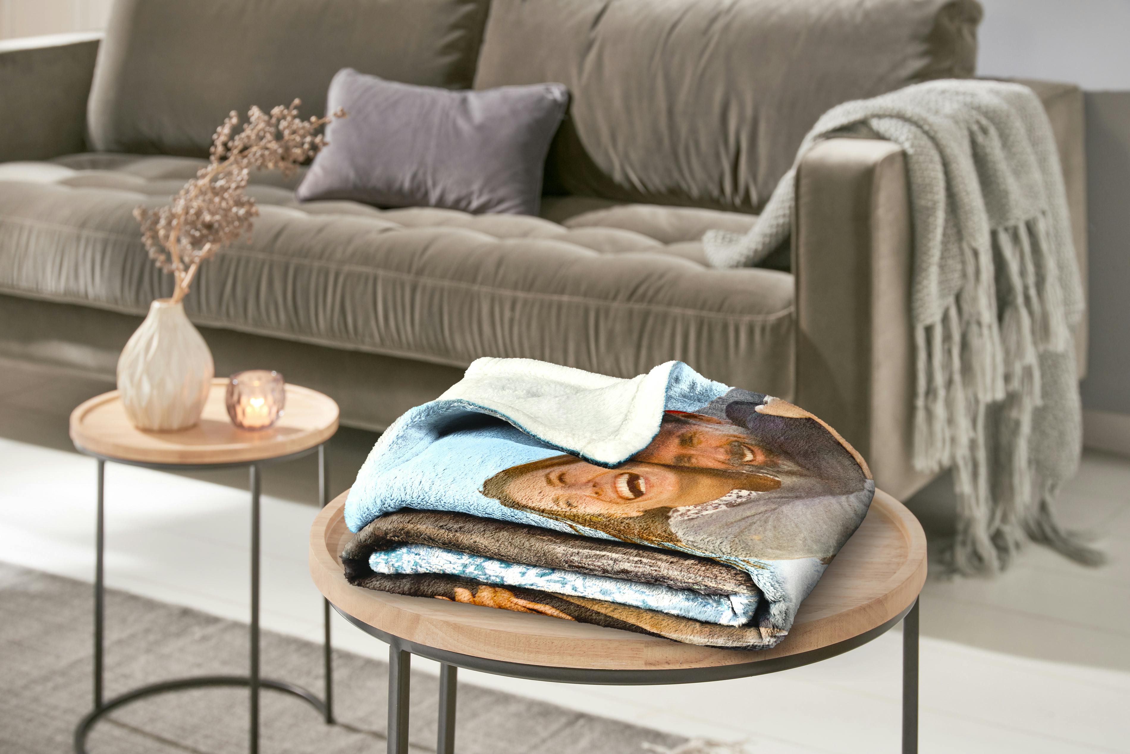 Decke mit eurem Foto personalisiert | Geschenk für Paare & Familie | Premium Plüschdecke / Kuscheldecke mit Namen & Datum | Jetzt Foto hochladen