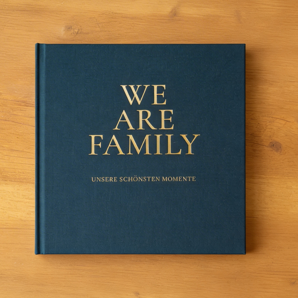 Fotobuch mit Stoffeinband großes Quadrat "We Are Family" in mitternachtsblau | Fotoalbum | Fotogeschenk | Geschenk mit Foto | Urlaub Fotobuch |