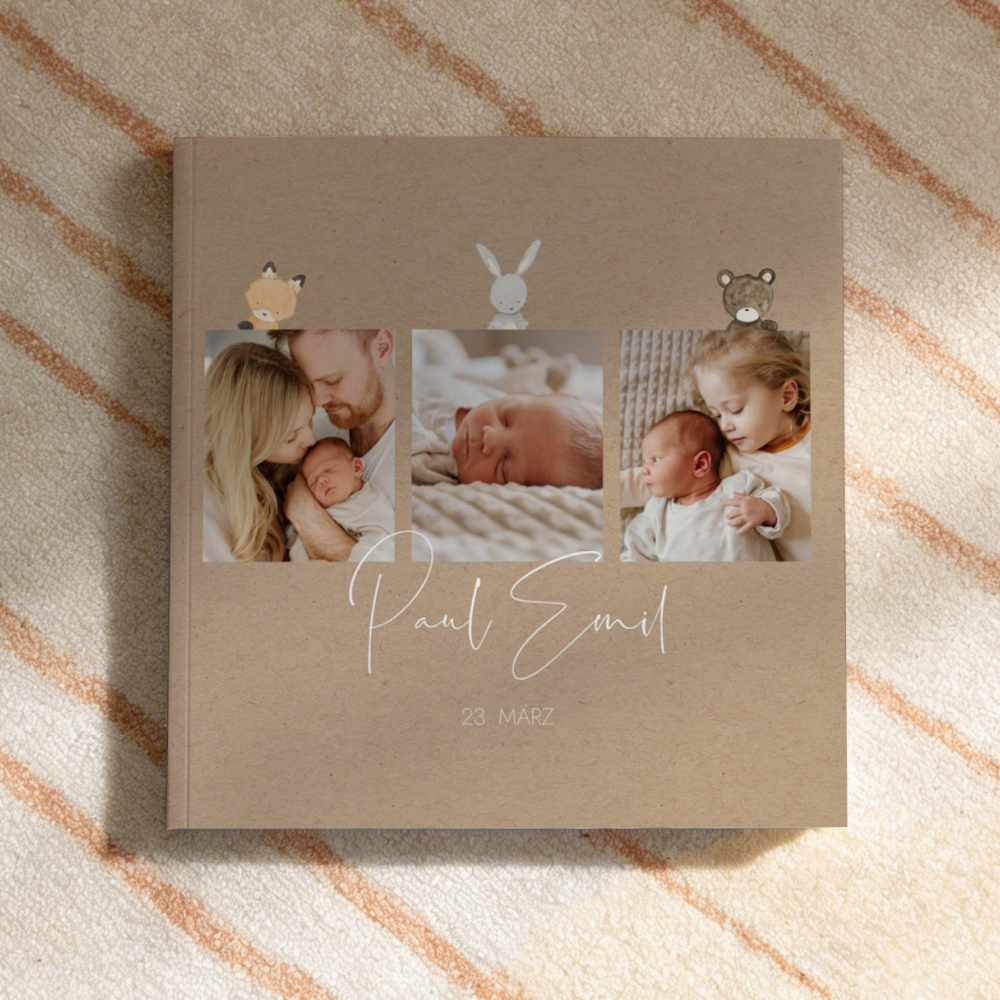 Fotobuch Softcover kleines Quadrat "Tierchen Trio" in beigebraun | Fotoalbum | Fotogeschenk | Geschenk mit Foto | Urlaub Fotobuch | Urlaubsbuch.