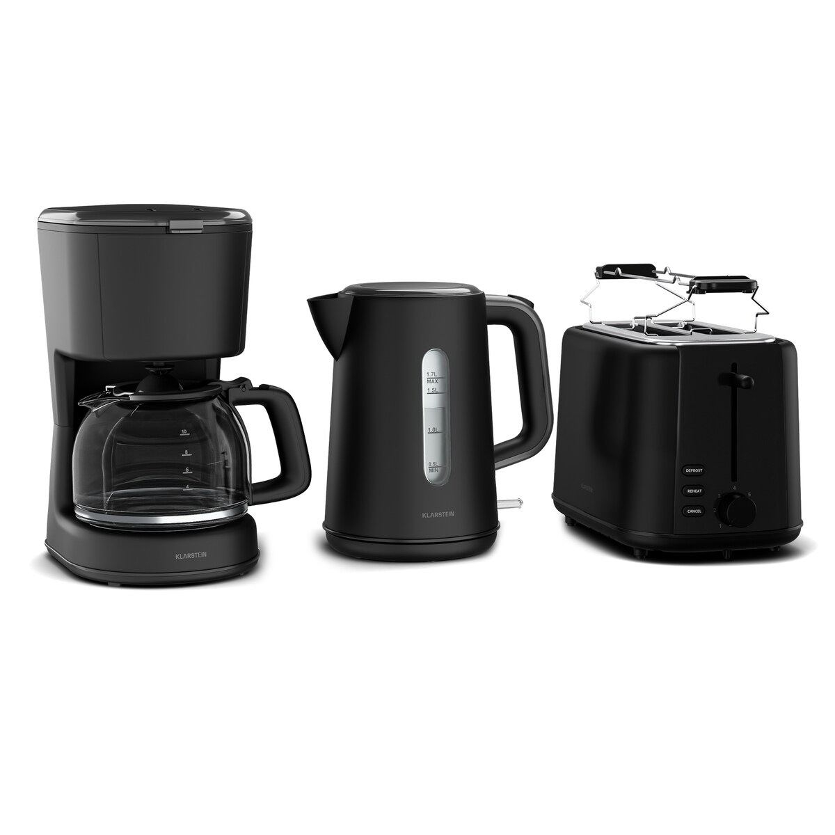 Victoria Frühstücksset | Toaster, Wasserkocher, Kaffeemaschine | 12 Tassen Schwarz Klarstein