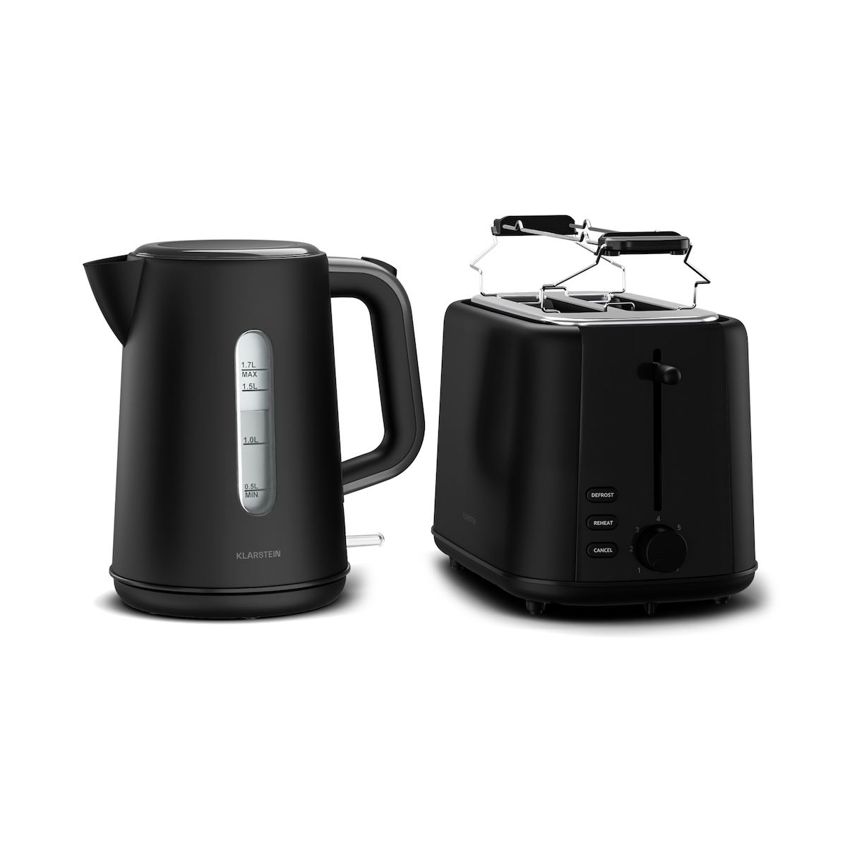Velaire Basis-Frühstücksset | 2-Schlitz-Toaster & Wasserkocher | 800 W | 1,7 l Schwarz Klarstein