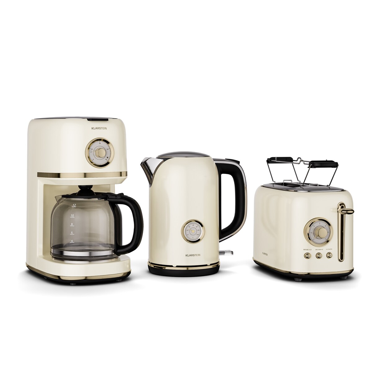 Victoria Frühstücksset | Toaster, Wasserkocher, Kaffeemaschine | 12 Tassen Creme Klarstein