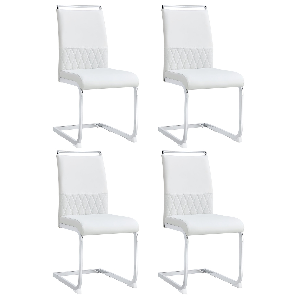 OKWISH Freischwinger Stuhl Set 4 Kunstleder Weiß 100x54x42 cm mit verchromtem Metallgestell Griffloch gepolstert bis 120 kg