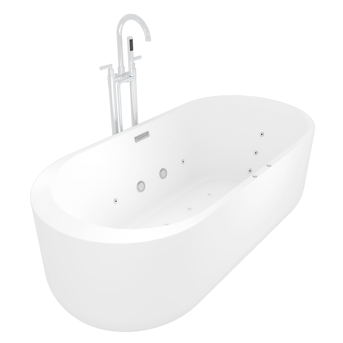 AcquaVapore freistehende Badewanne F26 170x80cm Whirlpool Luft & Wasser mit Armatur AF03