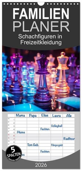 Familienplaner 2026 - Schachfiguren in Freizeitkleidung mit 5 Spalten (Wandkalender, 21 x 45 cm) CALVENDO