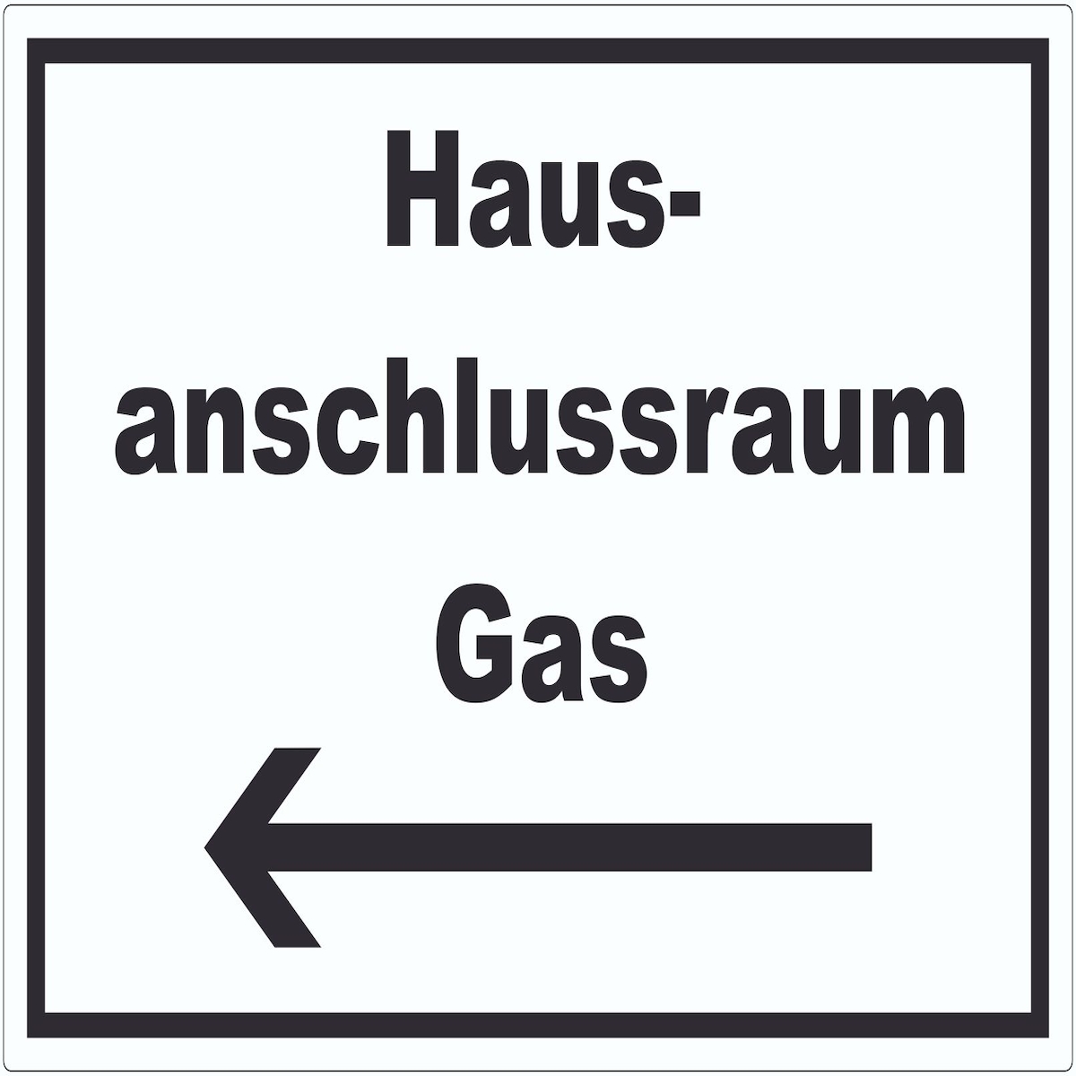 Hausanschlussraum Gas Schild mit Text und Richtungspfeil rechts HAR hochkant A4 Rückseite selbstklebend