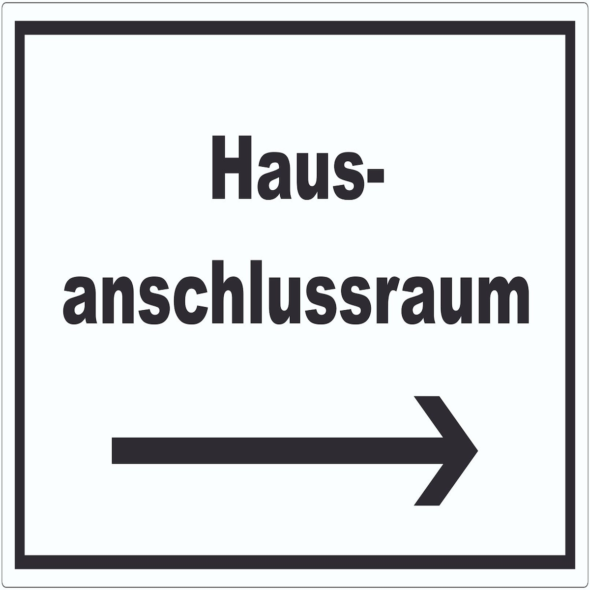 Hausanschlussraum Schild mit Text und Richtungspfeil rechts HAR hochkant A1 Rückseite selbstklebend
