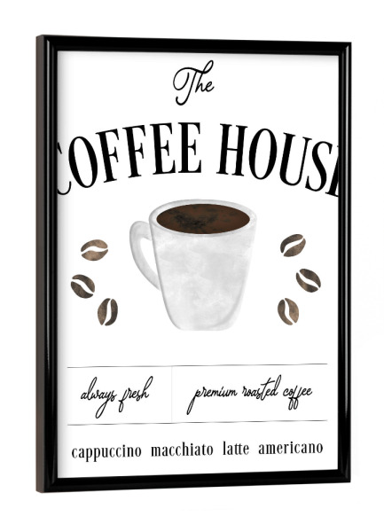 Poster mit schwarzem Rahmen "Immer frisches Kaffeehaus" artboxONE - Essen & Trinken - Kaffee,Kaffeebohnen,Küche