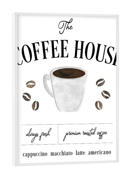 Poster mit weißem Rahmen "Immer frisches Kaffeehaus" artboxONE - Essen & Trinken - Kaffee,Kaffeebohnen,Küche