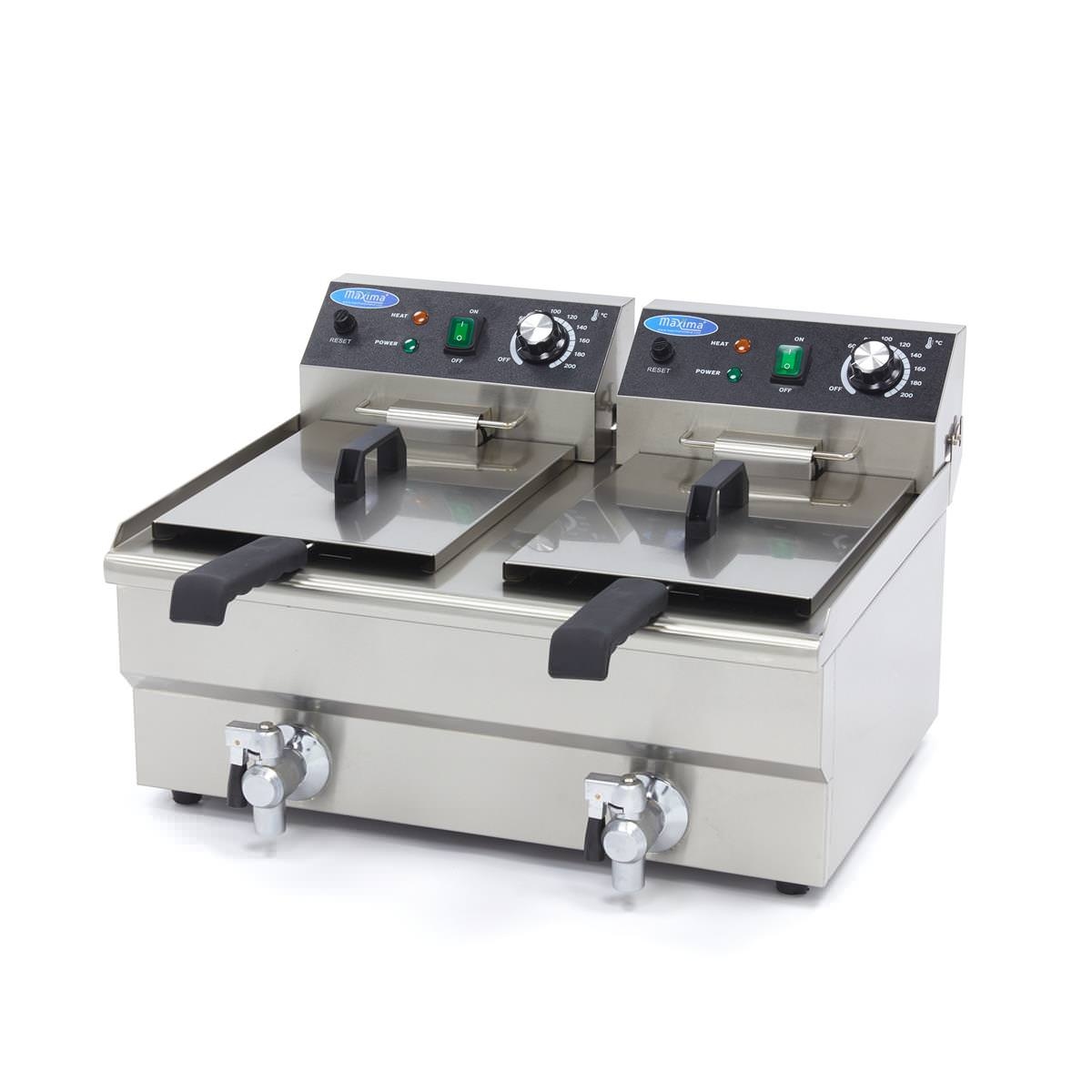 Maxima Elektro Fritteuse 2x 10L mit Ablasshahn