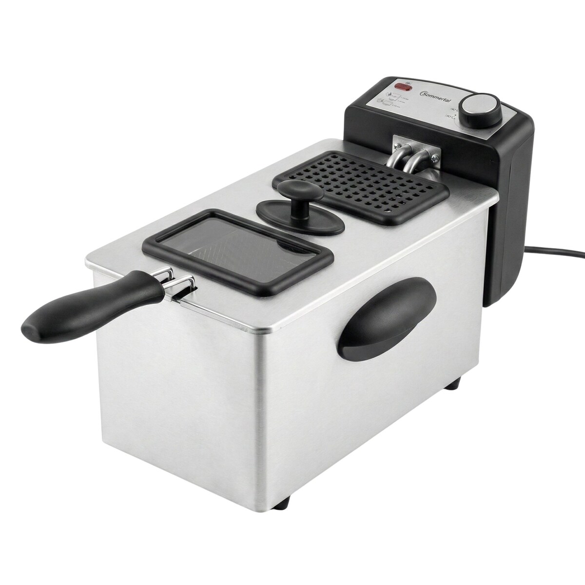 Sommertal Fritteuse 3L 2000W Edelstahl – Öl Fritteuse 130–200°C mit Sichtfenster | Deep Fryer für Haushalt & Pommes | EF2000