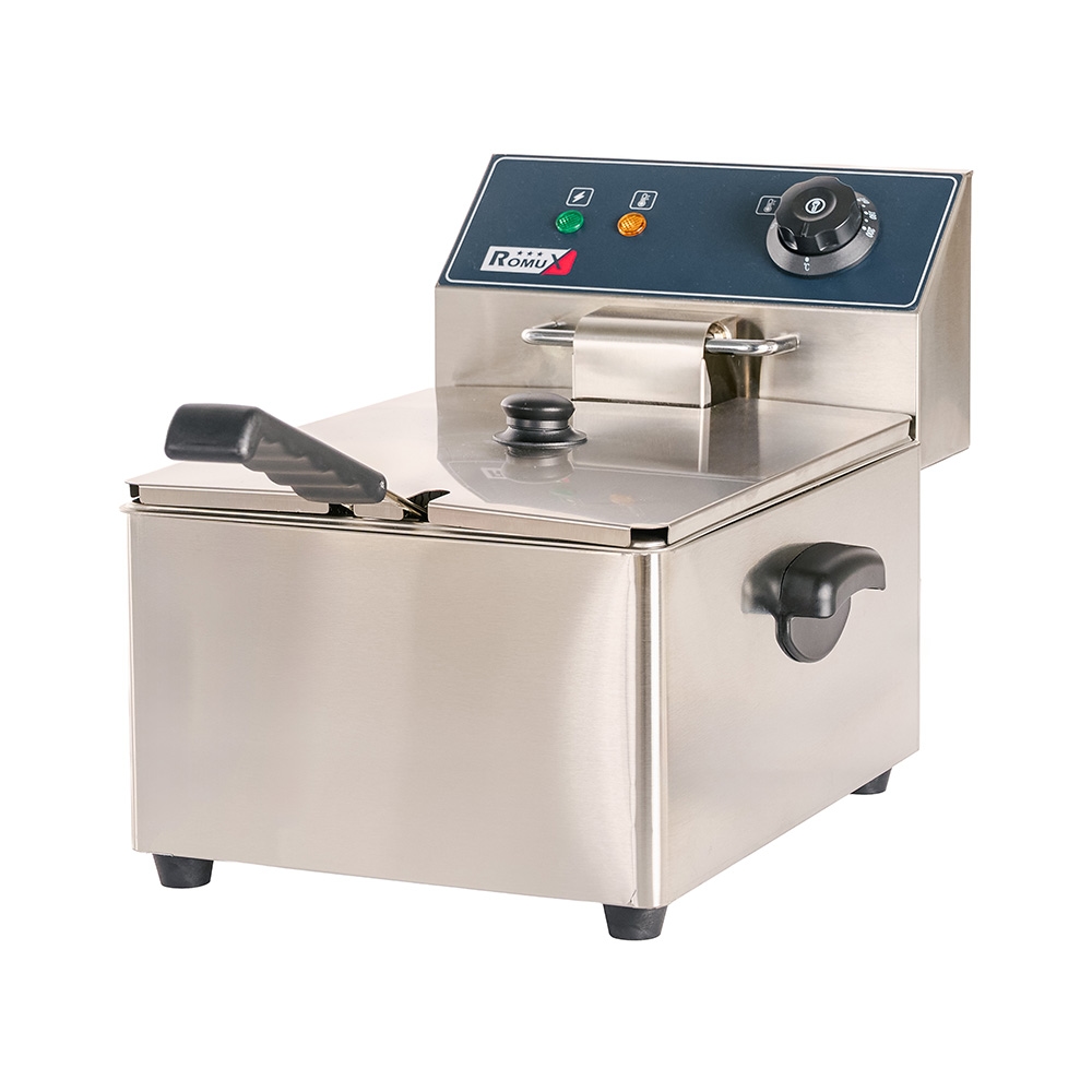 Romux Elektrische Fritteuse Professionelle 6 Liter Tischgerät Einfach | Fritteuse aus Edelstahl 2500 W mit Sicherheitsthermostat