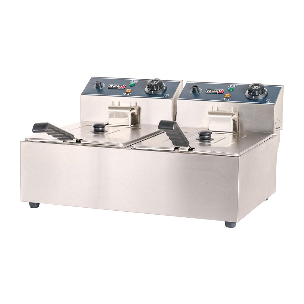 Romux Elektrische Fritteuse Professionelle 6+6 Liter Tischgerät Doppelt | Fritteuse aus Edelstahl 5000 W mit Sicherheitsthermostat