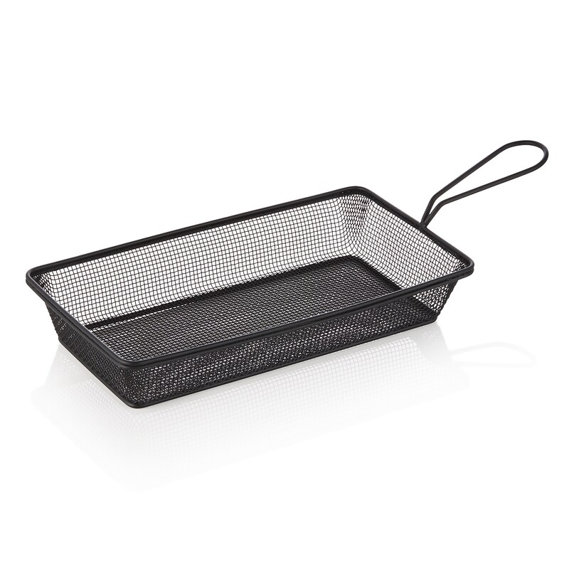 Servier- und Frittierkorb, 22 x 12,5 x 4 cm, schwarz pulverbeschichtet, Chromnickelstahl