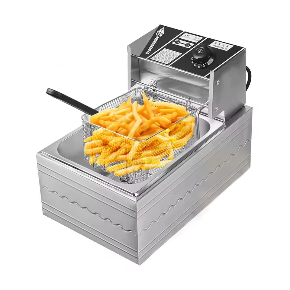 6L Fritteuse mit Temperaturkontrolle mit Frittierkorb Edelstahl Gastro Elektrische Fritöse Einzylinder