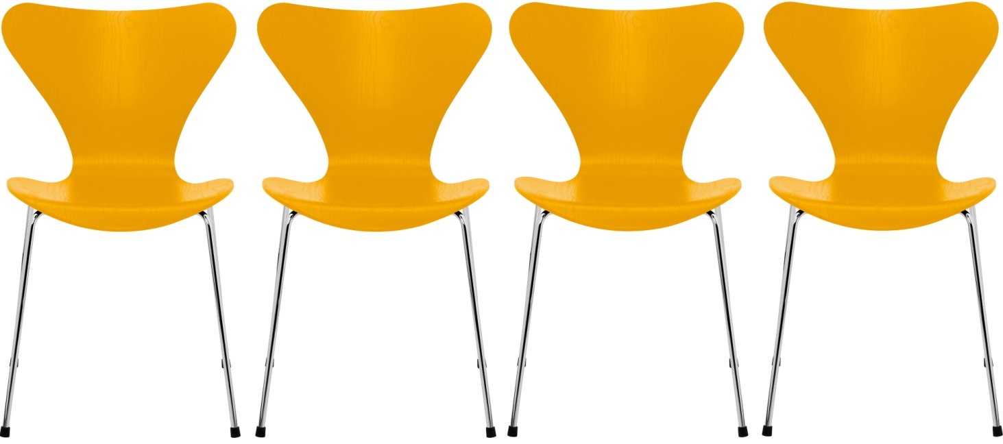 Siebener / Serie Stuhl 3107 Esche 4-er Set Fritz Hansen True yellow