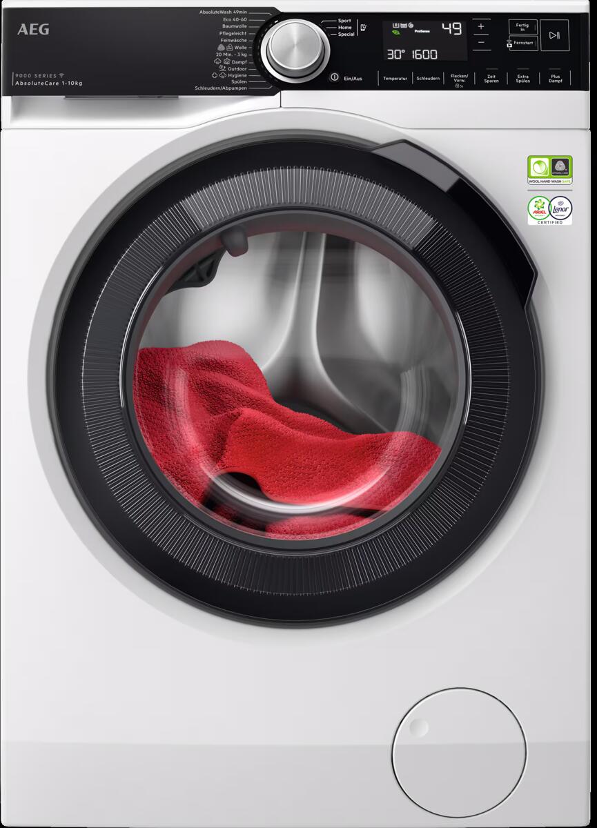 AEG LR9W75490 9kg Frontlader Waschmaschine, 60 cm breit, 1400 U/Min, Aqua Control, WLAN, ProSense, weiß