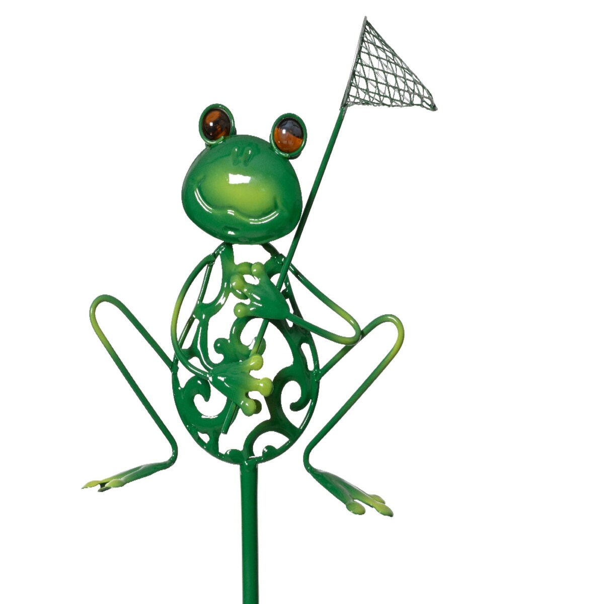 Decoris Dekofigur Frosch mit Kescher 91cm Metall Gartenstecker Outdoor Tierfigur Gartendeko Metallfigur Außenbereich Metallstecker wetterfest