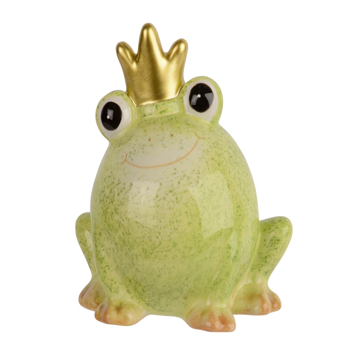 Dekofigur Frosch mit goldener Krone 14,5cm Keramik Grün