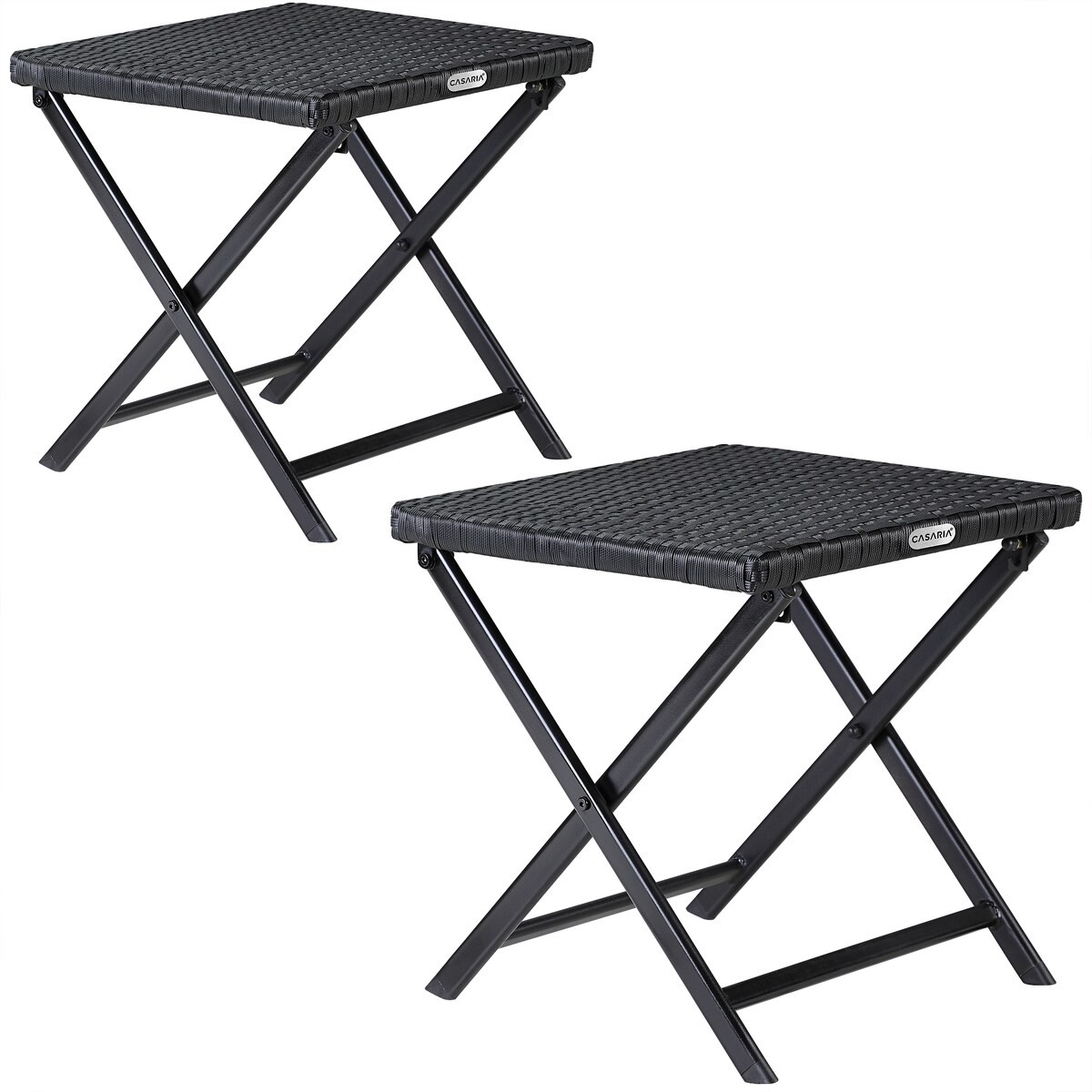 CASARIA 2er Set Polyrattan Klapphocker Fußablage Klappbar Wetterfest