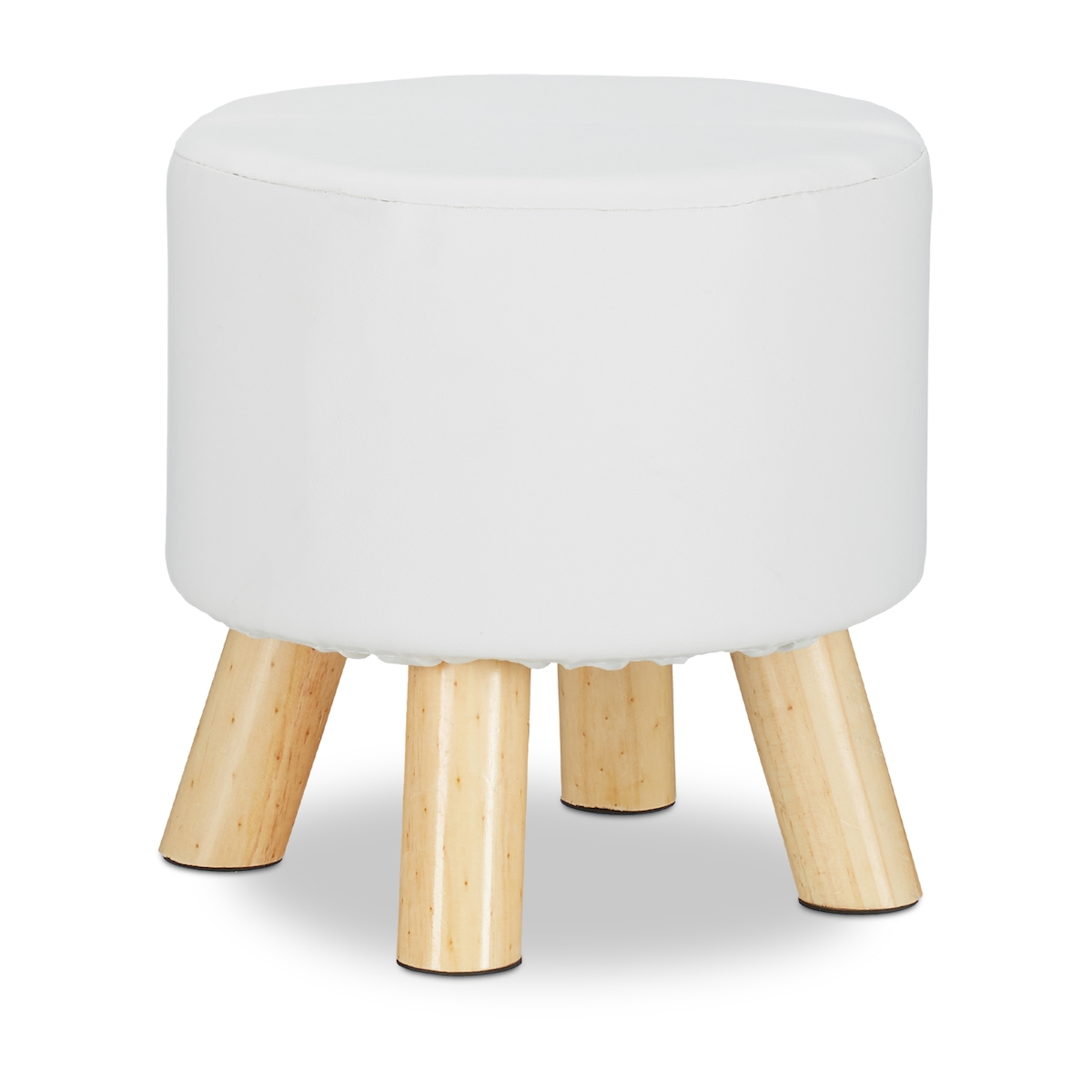 Relaxdays Hocker Kunstleder, gepolstert, 4 Holzbeine, flacher Fußhocker, runder Dekohocker, H x D: 30 x 30 cm, weiß
