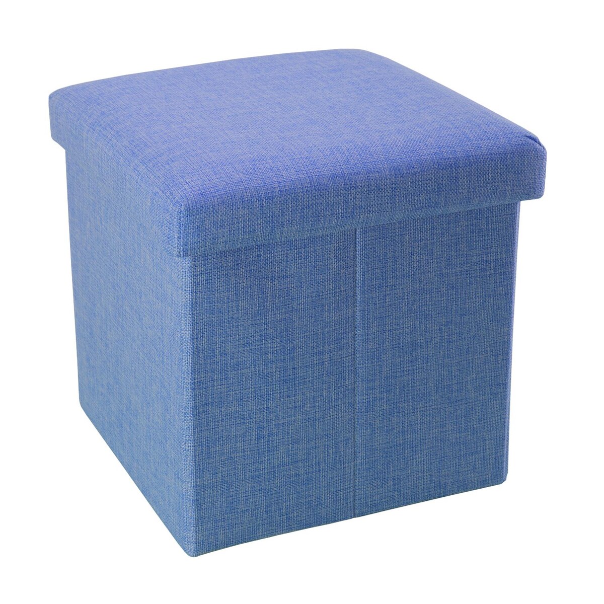 Intirilife Faltbarer Sitzhocker 38x38x38 cm in MEER BLAU - Sitzwürfel Fußhocker mit Stauraum und Deckel aus Stoff in Leinen Optik