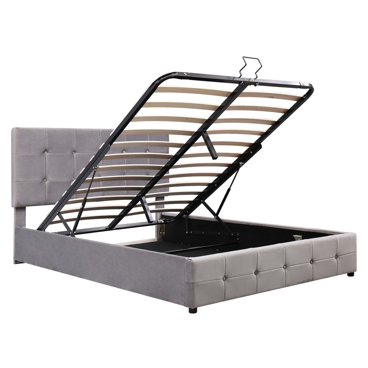Merax Hydraulisches Polsterbett 140x200 aus Samt Doppelbett Funktionsbett mit Höhenverstellbares Kopfteil & Lattenrost Grau