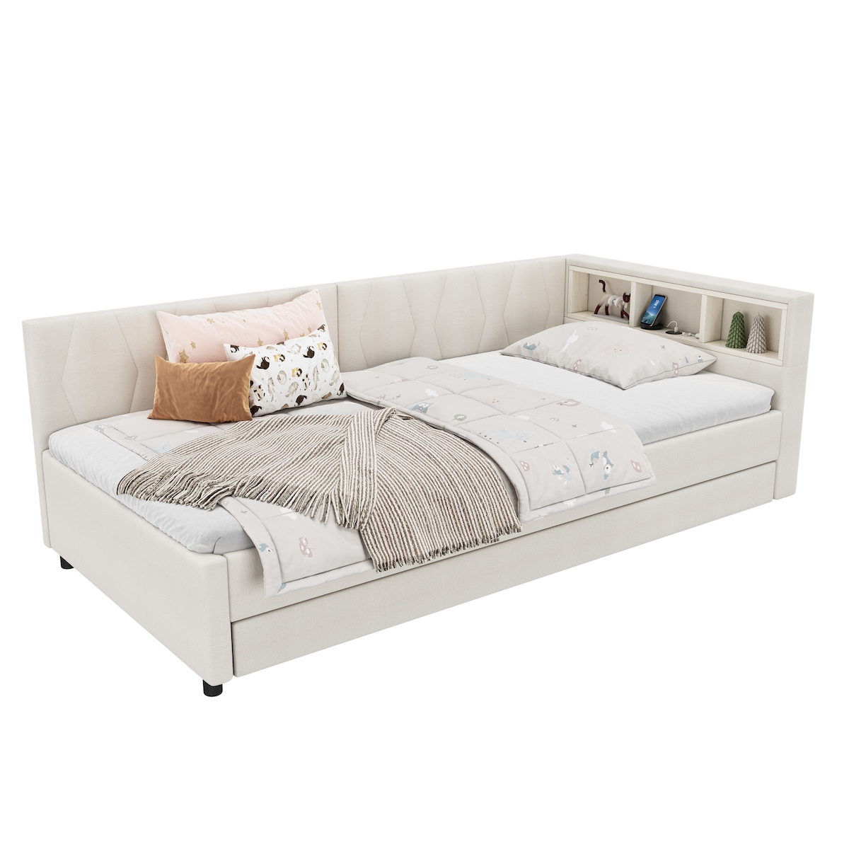 Funktionsbett Unterbau Bett Premium Twinbox – 90 x 210 cm / Nika Beige / ohne Matratze