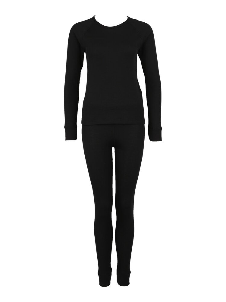 ASKSA Damen Thermounterwäsche Set Innenfleece Thermo Unterhemd Wärmer Funktionsunterwäsche, Schwarz, L