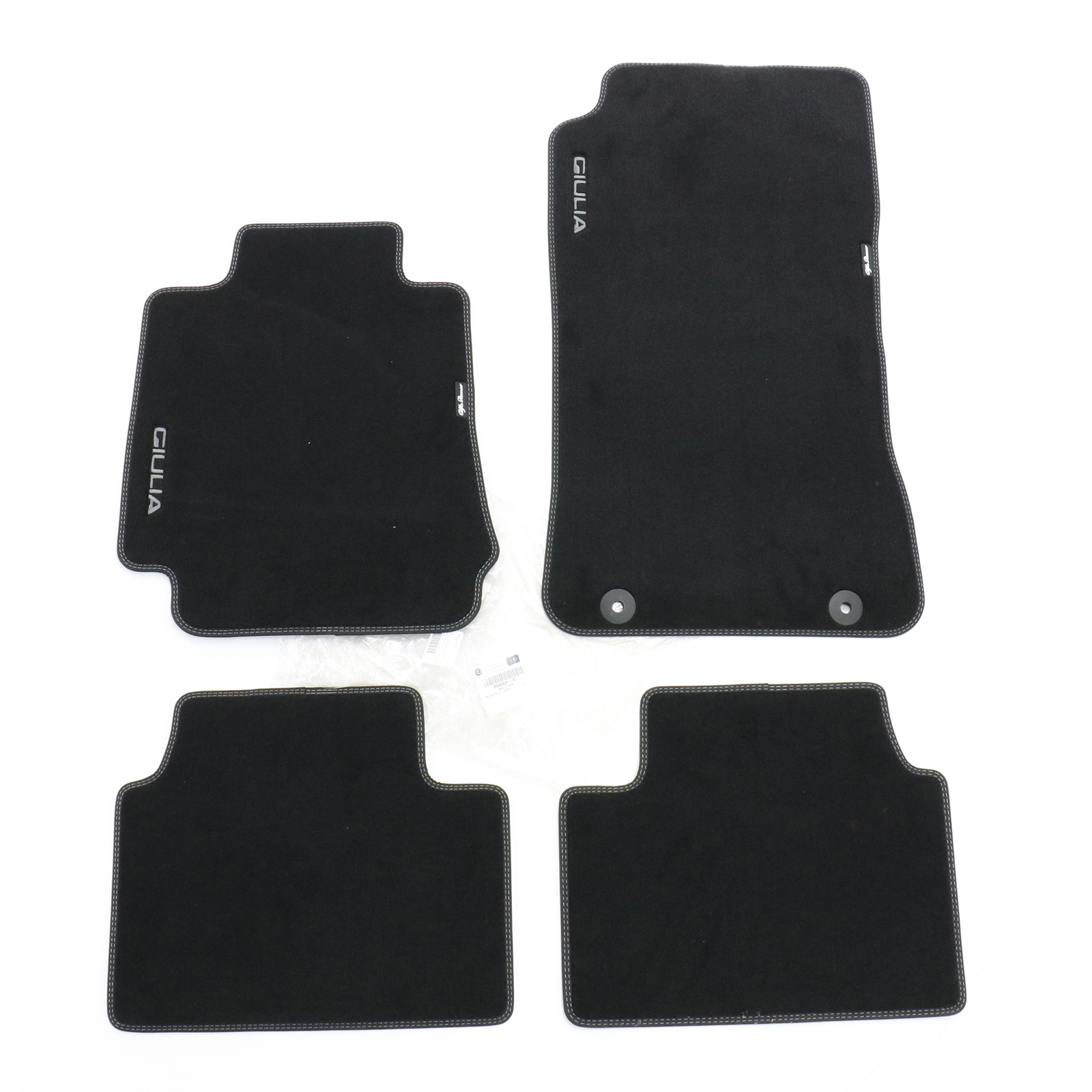 Fussmatten 4er Velour Set mit weiß gesticktem Giulia Logo Alfa Romeo Giulia ab Bj. 2016 2-Befestigungsösen an den vorderen Matten; NUR 4x2!!!!