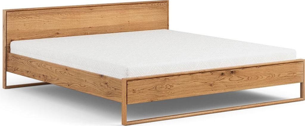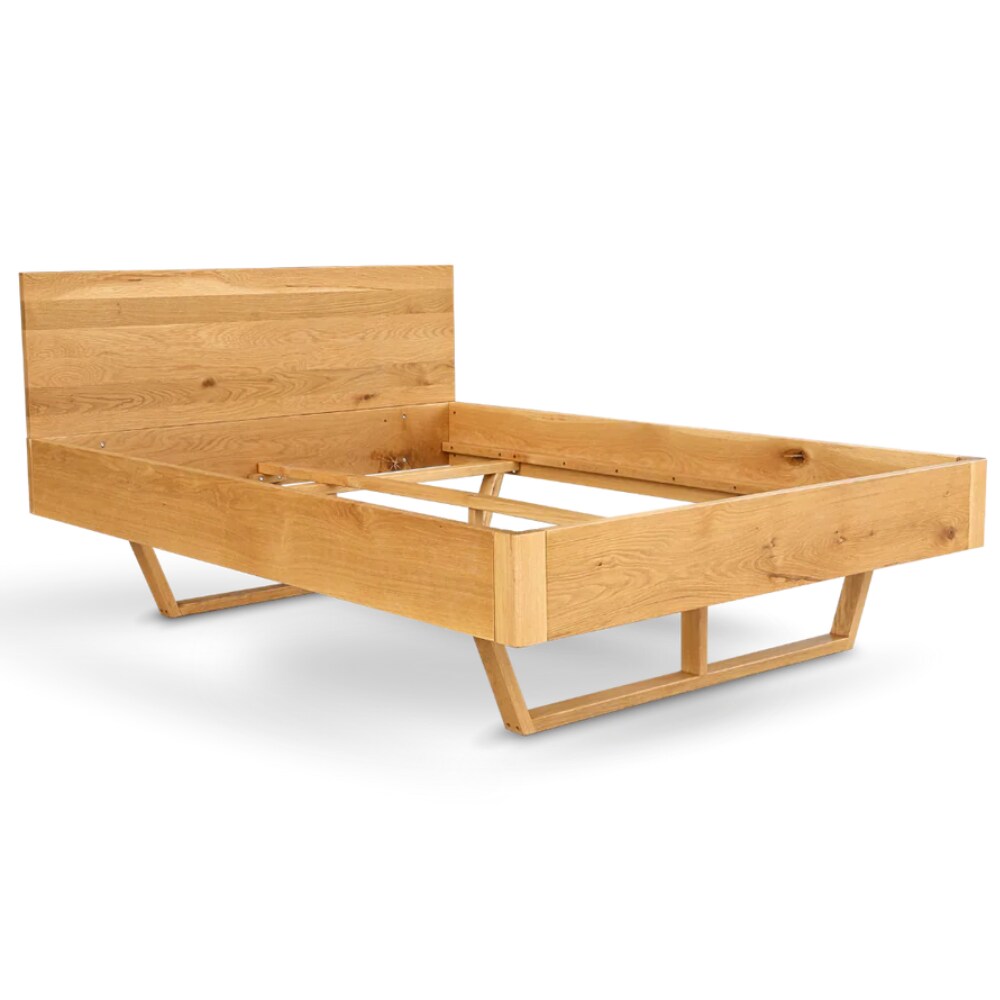 DELUKE Massivholzbett 160x200cm KEILO - Eichenholz | Bettrahmen mit Bettkopf, Holzbett naturgeölt, Holzkufen | Bettgestell Doppelbett Futonbett