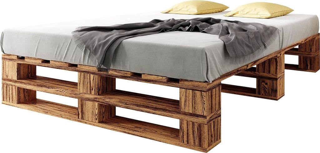 sunnypillow Palettenbett M2 aus Holz 160 x 200 cm mit Lattenrost, Doppelbett, Familienbett - erhöhtes Ehebett Bettgestell Futonbett Komforthöhe