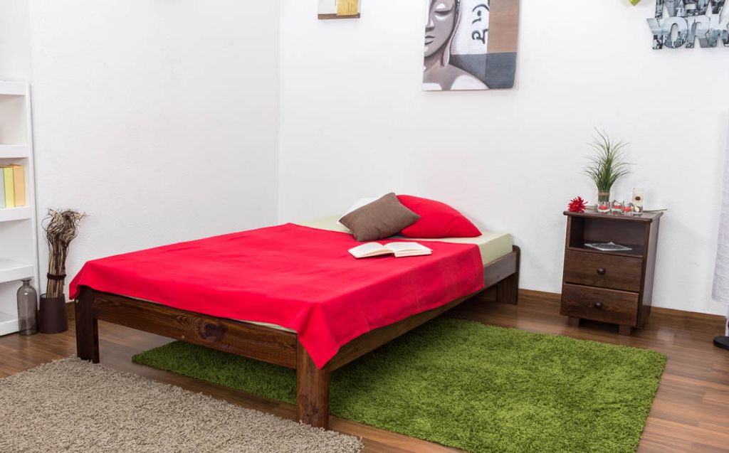 Futonbett / Massivholzbett Kiefer Vollholz massiv Nussfarben A10, inkl. Lattenrost - Abmessung 120 x 200 cm