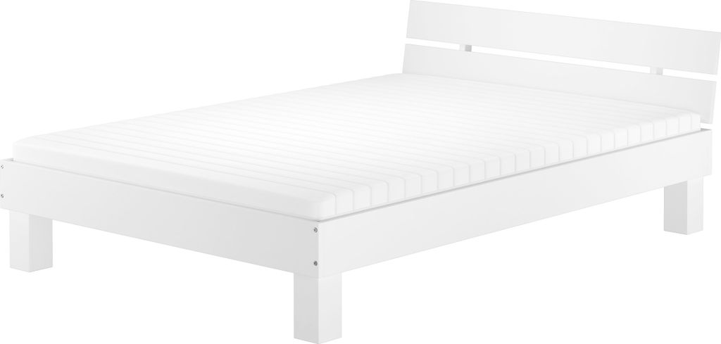 Doppelbett Überlänge 140x220 Massivholzbett weiß Futonbett Jugend Zubehör wählbar V-60.86-14-220WFederholzrahmen inkl.