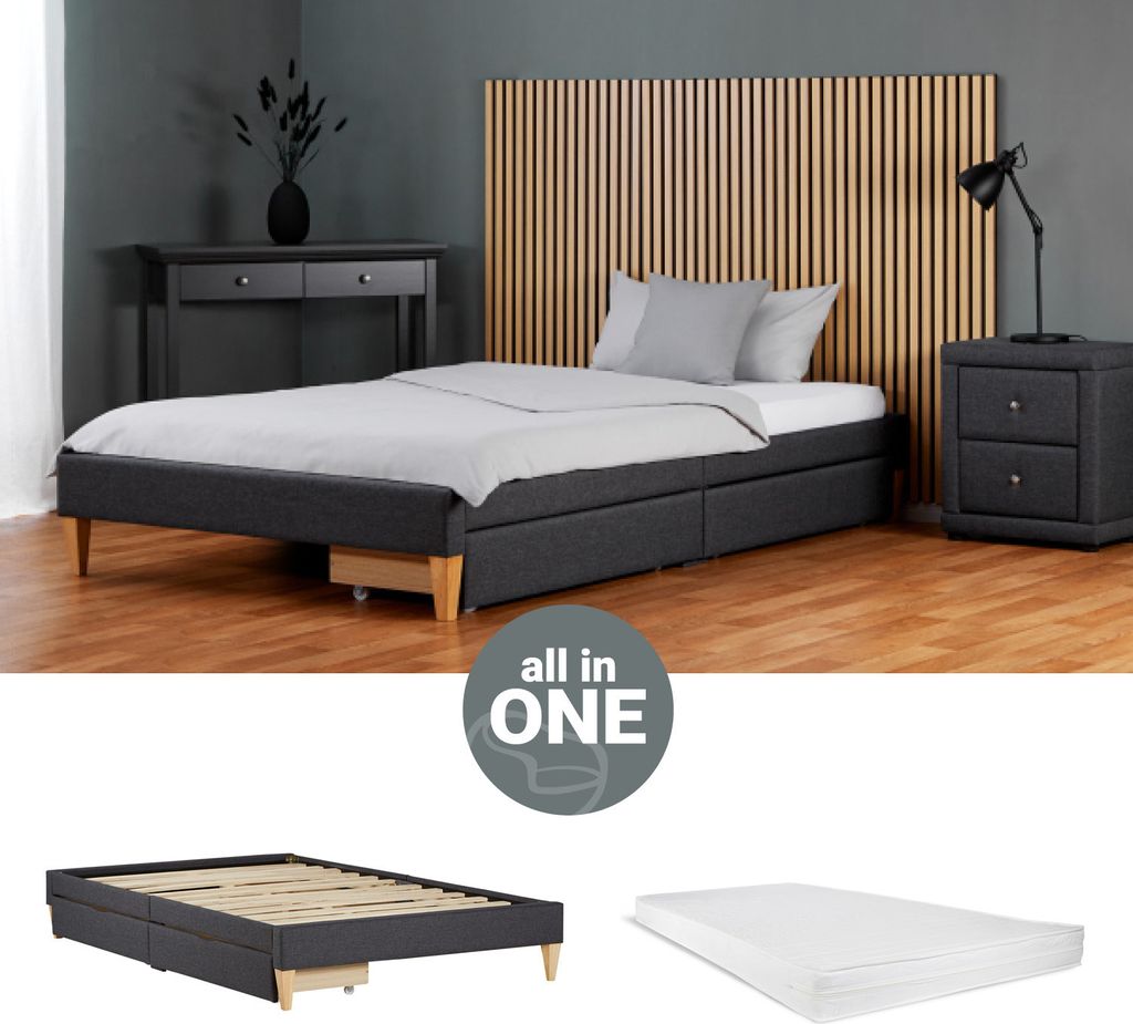 Homestyle4u Polsterbett 140 x 200 Grau mit Matratze 2 Bettkästen Lattenrost Futonbett Bett Bettgestell