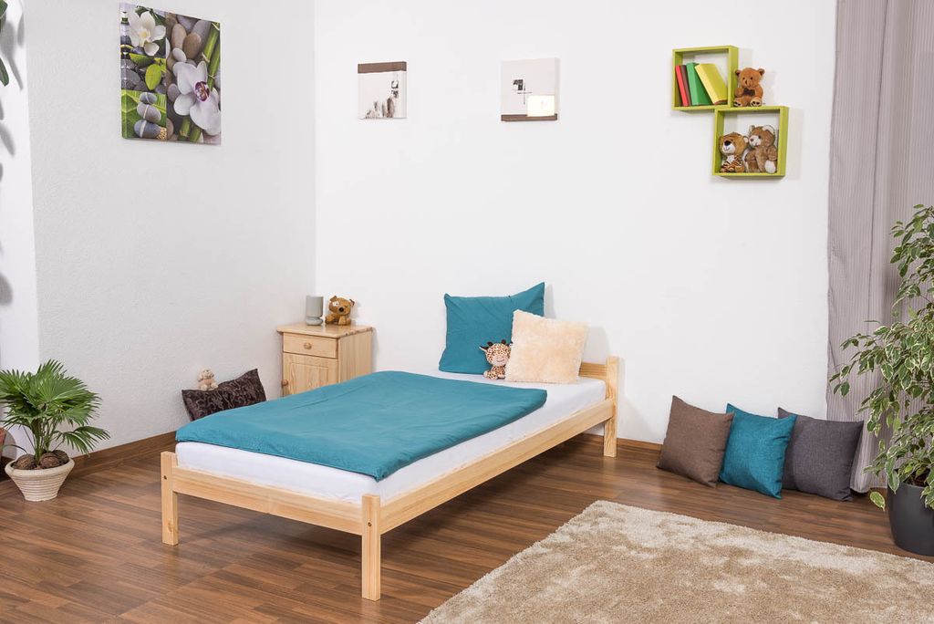 Bettrahmen Einzelbett 80x200 Futonbett Kieferbett Massivholz natur Zubehör wählbar V-60.38-08Rollrost inkl.