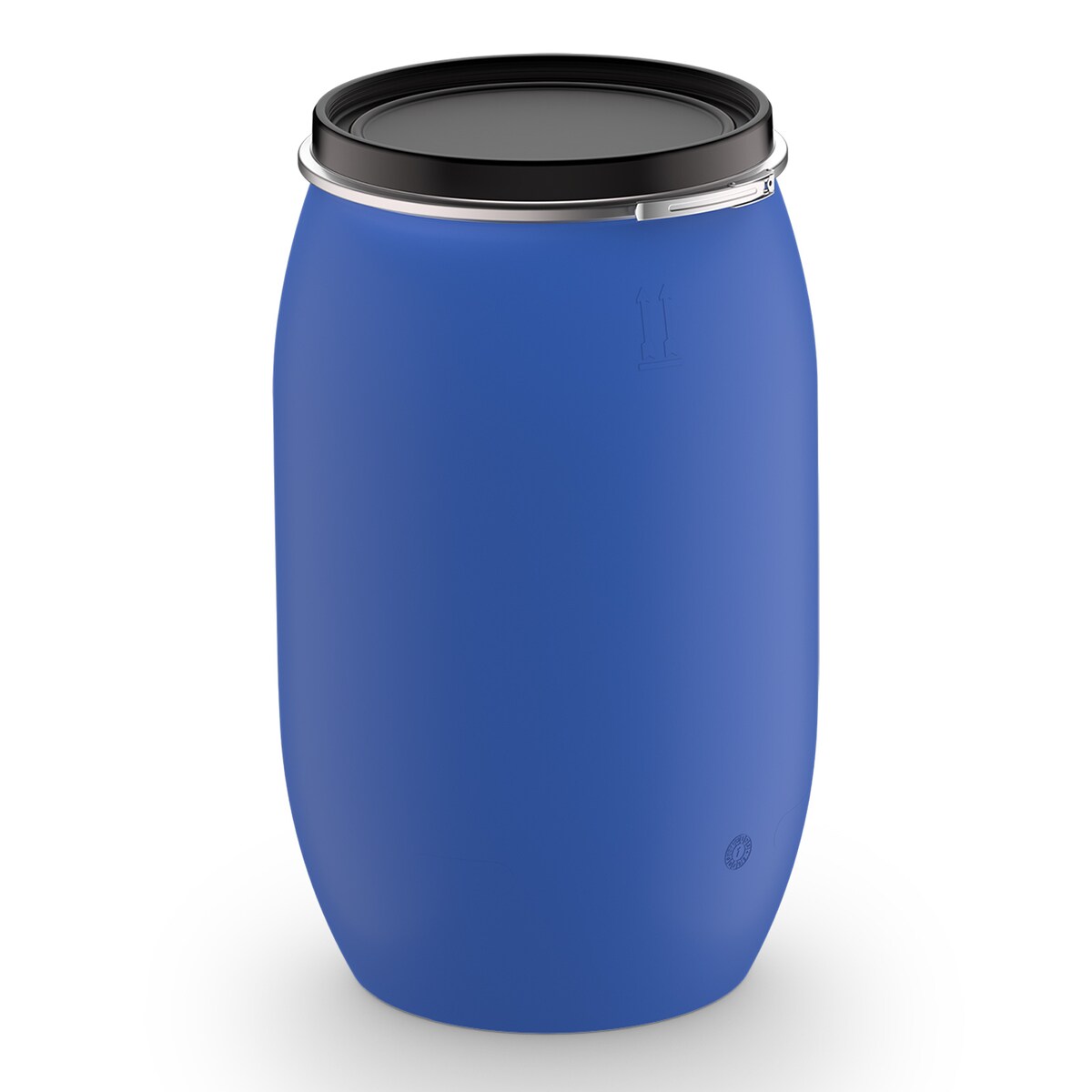 kanister-vertrieb 220 Liter Deckelfass, Kunststofffass, Futtertonne, Fass, Weithalstonne Farbe blau inkl. Etikett (220 D)